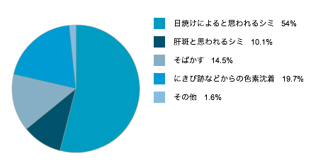 特に悩みの多かった「日焼けによると思われるシミ」は、1の老人性色素斑に該当します。