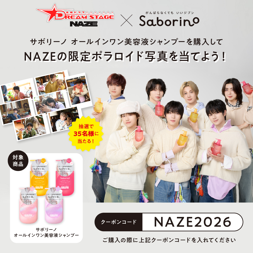 「サボリーノ オールインワン美容液シャンプー」を1本以上ご購入の上、キャンペーンにご参加いただいた方の中から抽選で35名様にNAZEの限定ポラロイド写真をプレゼント!
