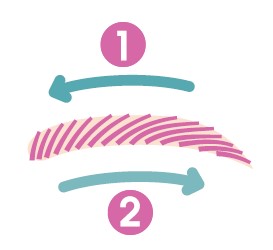 2.眉頭から眉尻まで毛流れに沿って塗り、全体の毛流れを整えます。