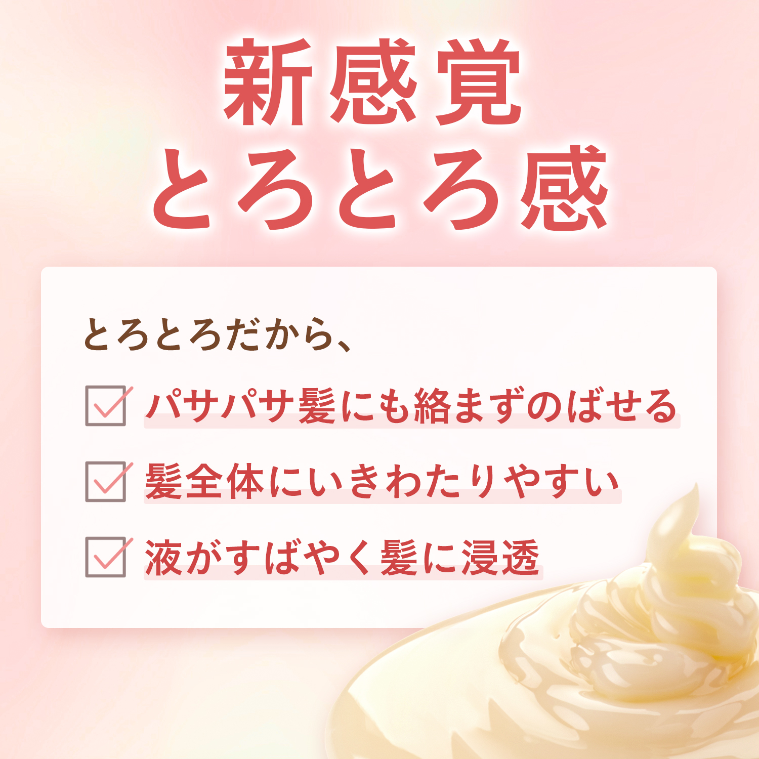 とろとろ液状クリームなので髪全体にのばしやすく、すばやくなじみます。