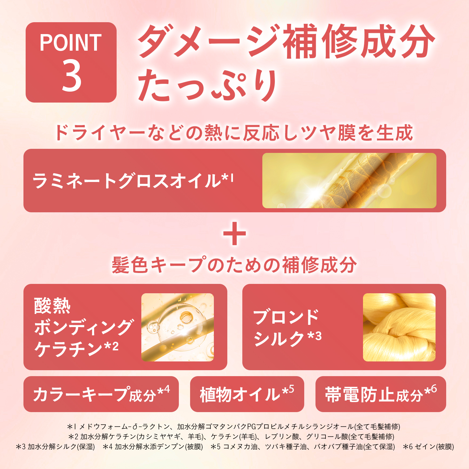 ブロンドシルク*3希少な濃黄色のシルク由来成分で輝く髪に