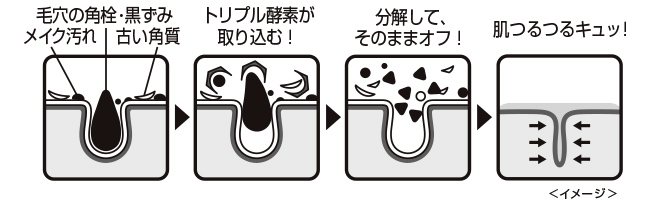 毛穴の角栓や古い角質、メイク汚れを分解してオフします。