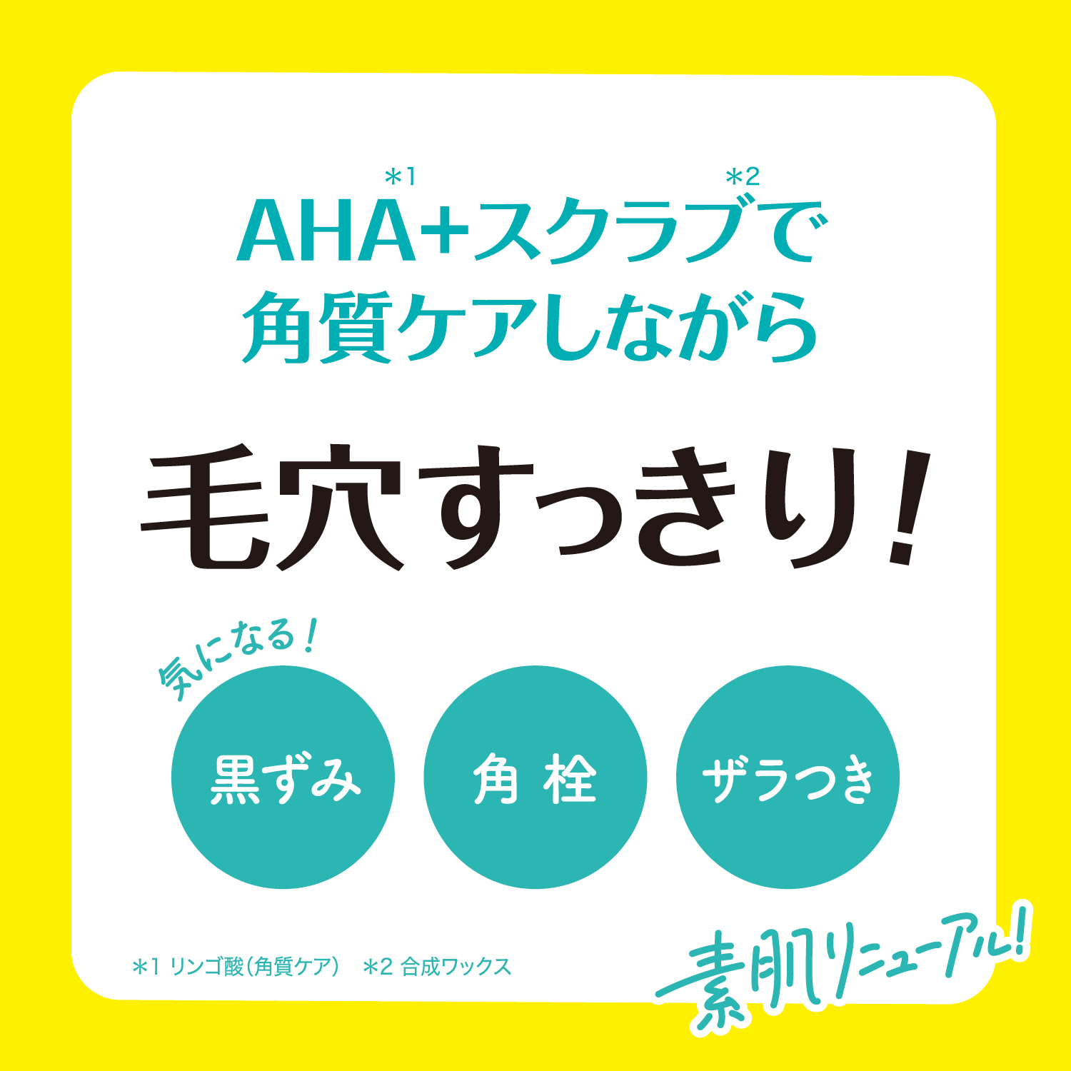 AHA(リンゴ酸)とスクラブ*2配合