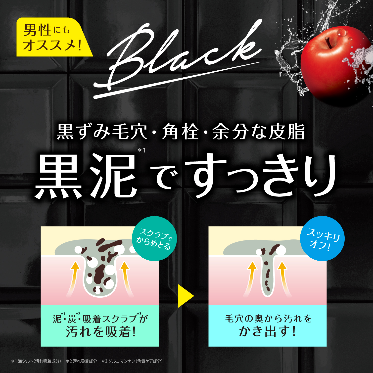 毛穴の奥の汚れや古い角質を分解し、スクラブ*3マッサージでかき出して、黒泥*2でしっかり吸着。