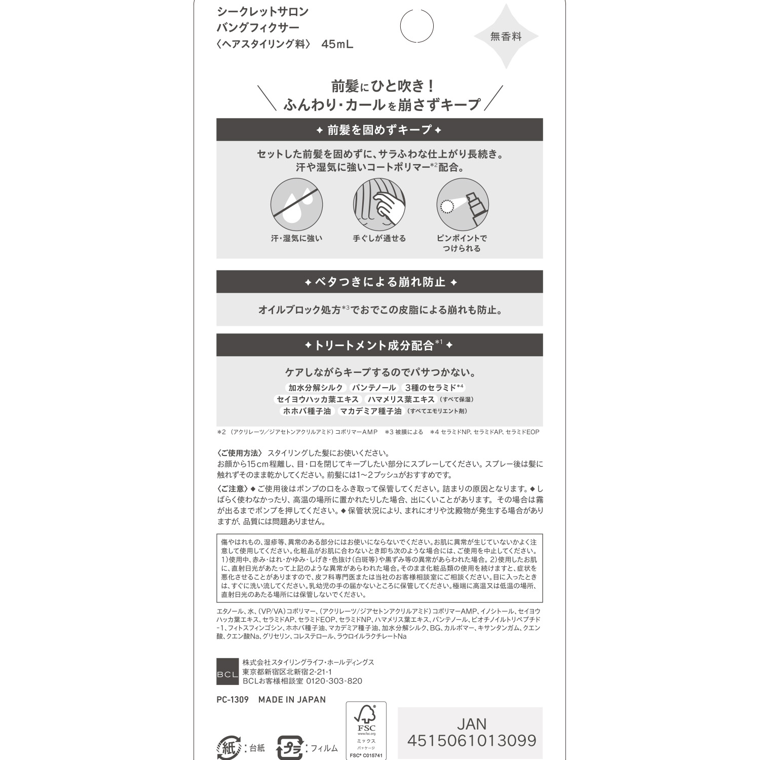 スタイリングした髪にお使いください。