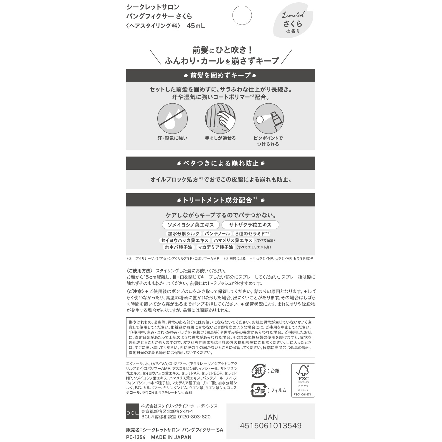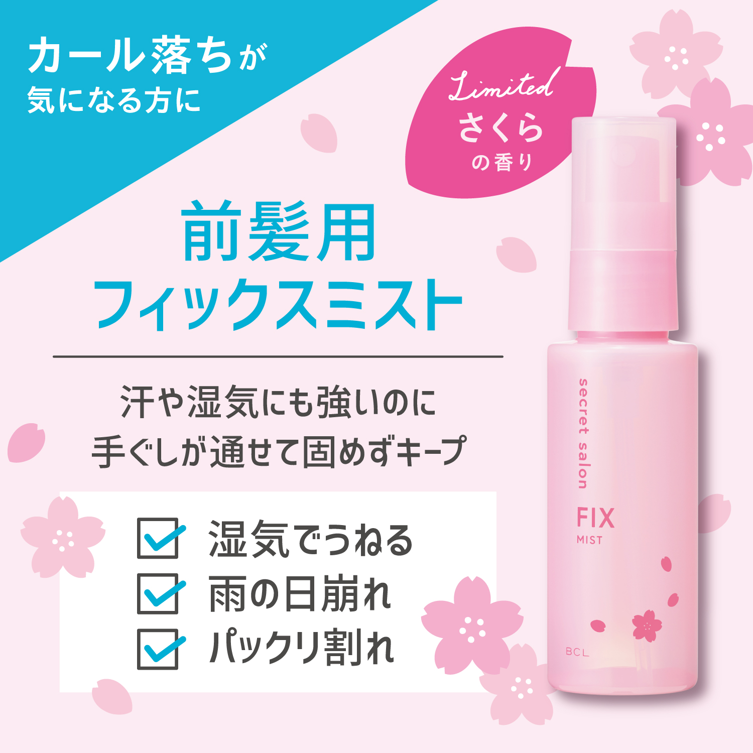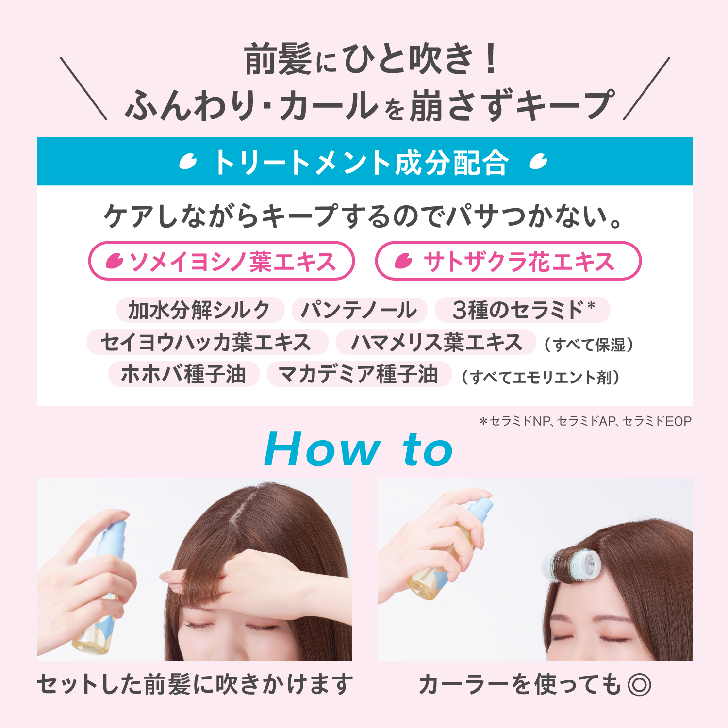 朝にサッとひと吹きするとほんのりさくらの香りに包まれ、夕方までふんわり前髪が持続します。