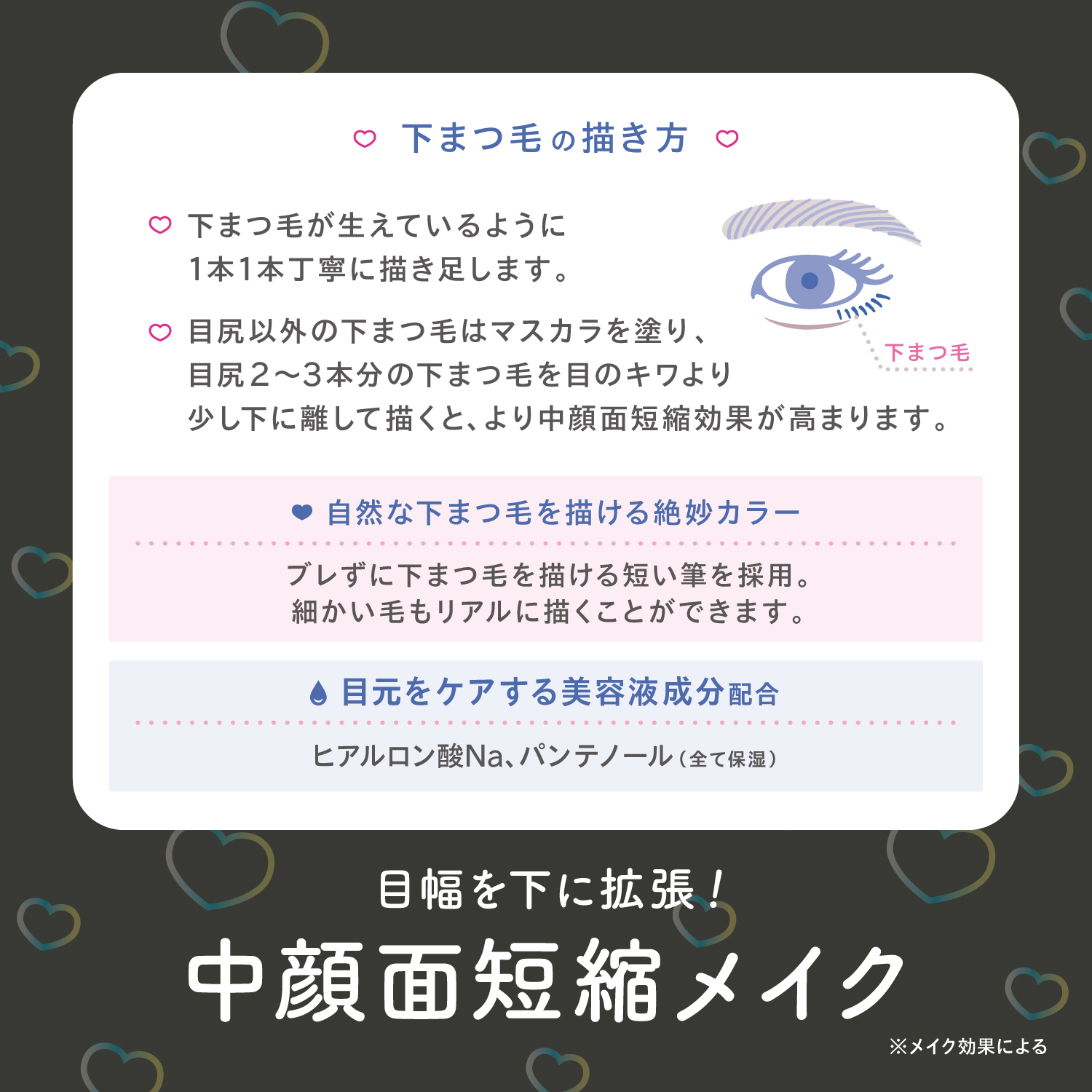 汗・涙・こすれに強い処方で、描いた下まつ毛を長時間保ちます。