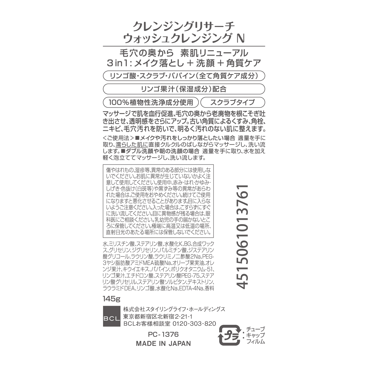 1回の洗浄でメイク落としも洗顔も角質ケアも完了。