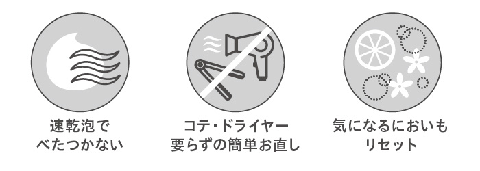 速乾泡をもみ込むだけで簡単にお直しできます。