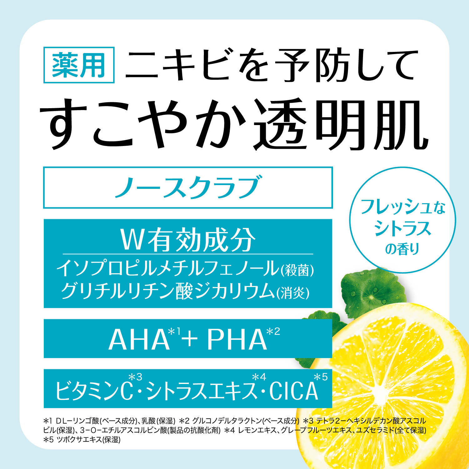■保湿成分・・・ビタミンC*4、シトラスエキス*5、CICA*6