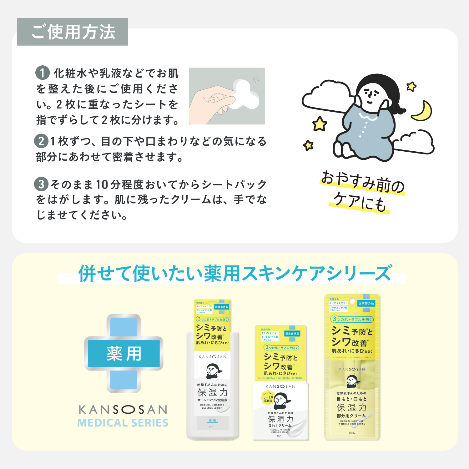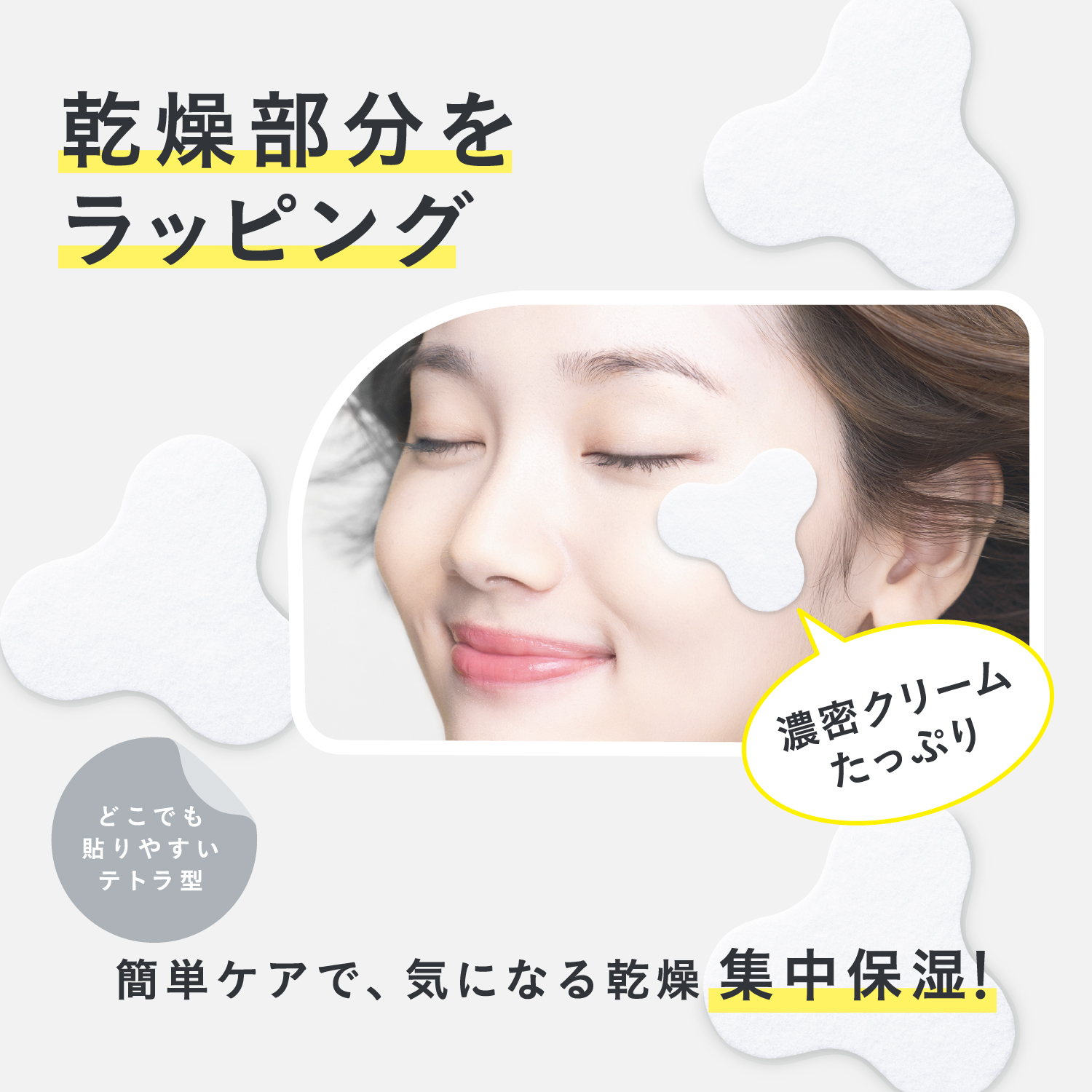 目もとや口もとの乾燥が気になる部分にピンポイントで貼りやすいテトラ型のパッチです。