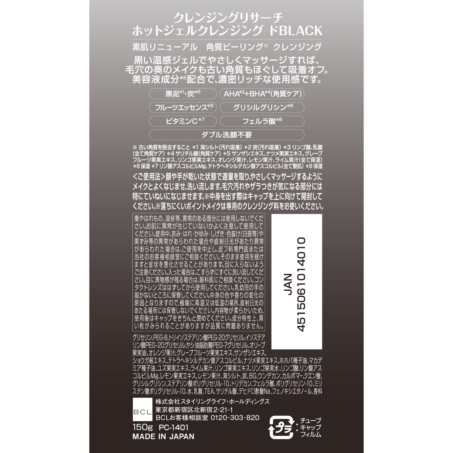 美容液成分配合、濃密ホットジェルクレンジング
