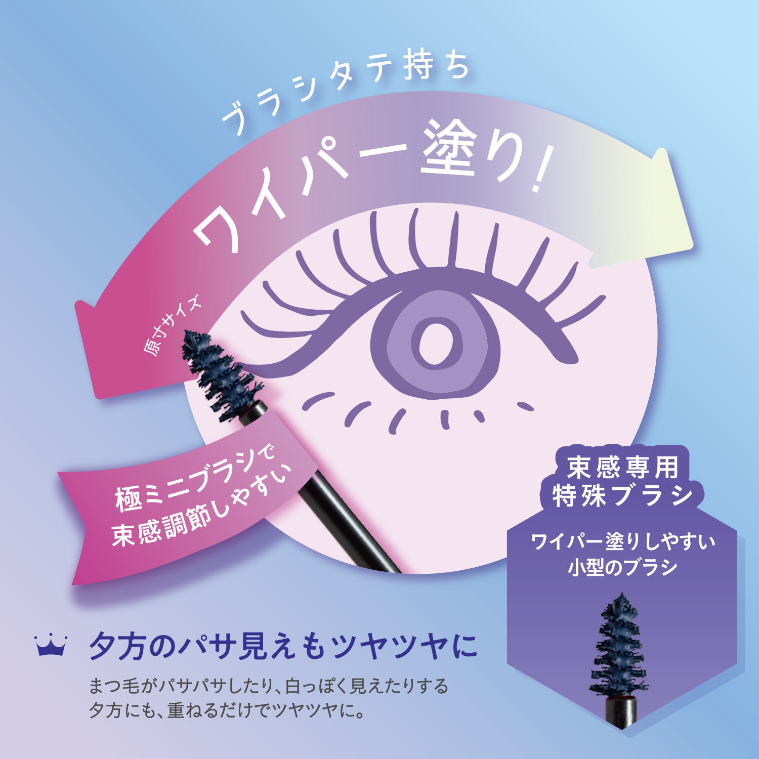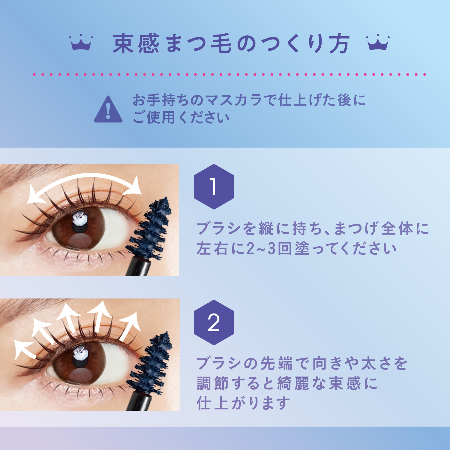 いつものマスカラの後に重ねるだけで、簡単キレイにアイドルのような束感まつ毛に仕上げます。