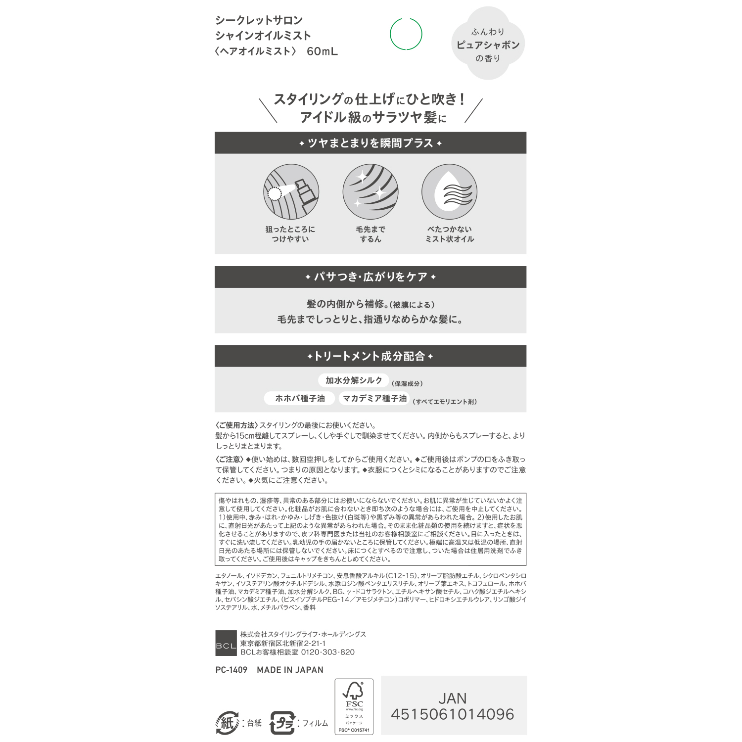 髪にツヤ・まとまりを出したい時に、シュッとひと吹きするだけで、