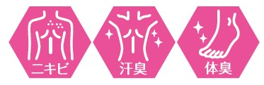 洗うだけで皮膚を洗浄・殺菌・消毒して、ニキビや体臭・汗臭をしっかりと防ぎます。