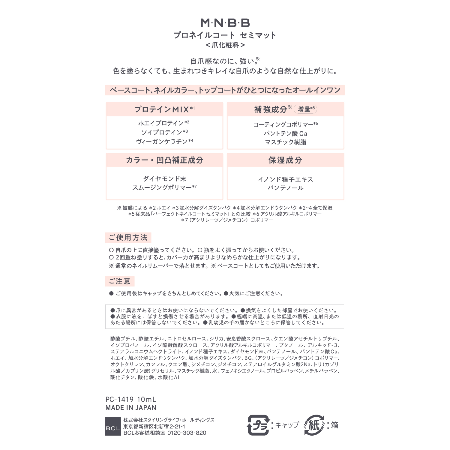 補強成分*2(増量*6)コーティングコポリマー*7、パントテン酸Ca、マスチック樹脂