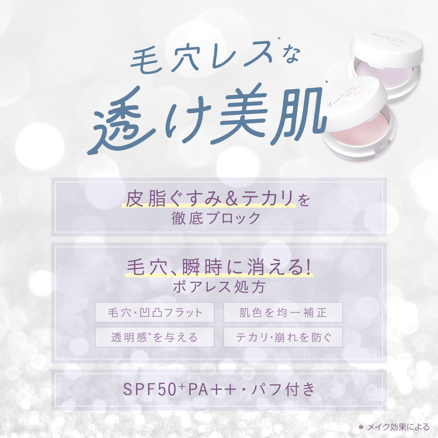 肌のアラをぼかしながら明るくトーンアップして、ふんわりツヤ感のある肌に仕上げます。