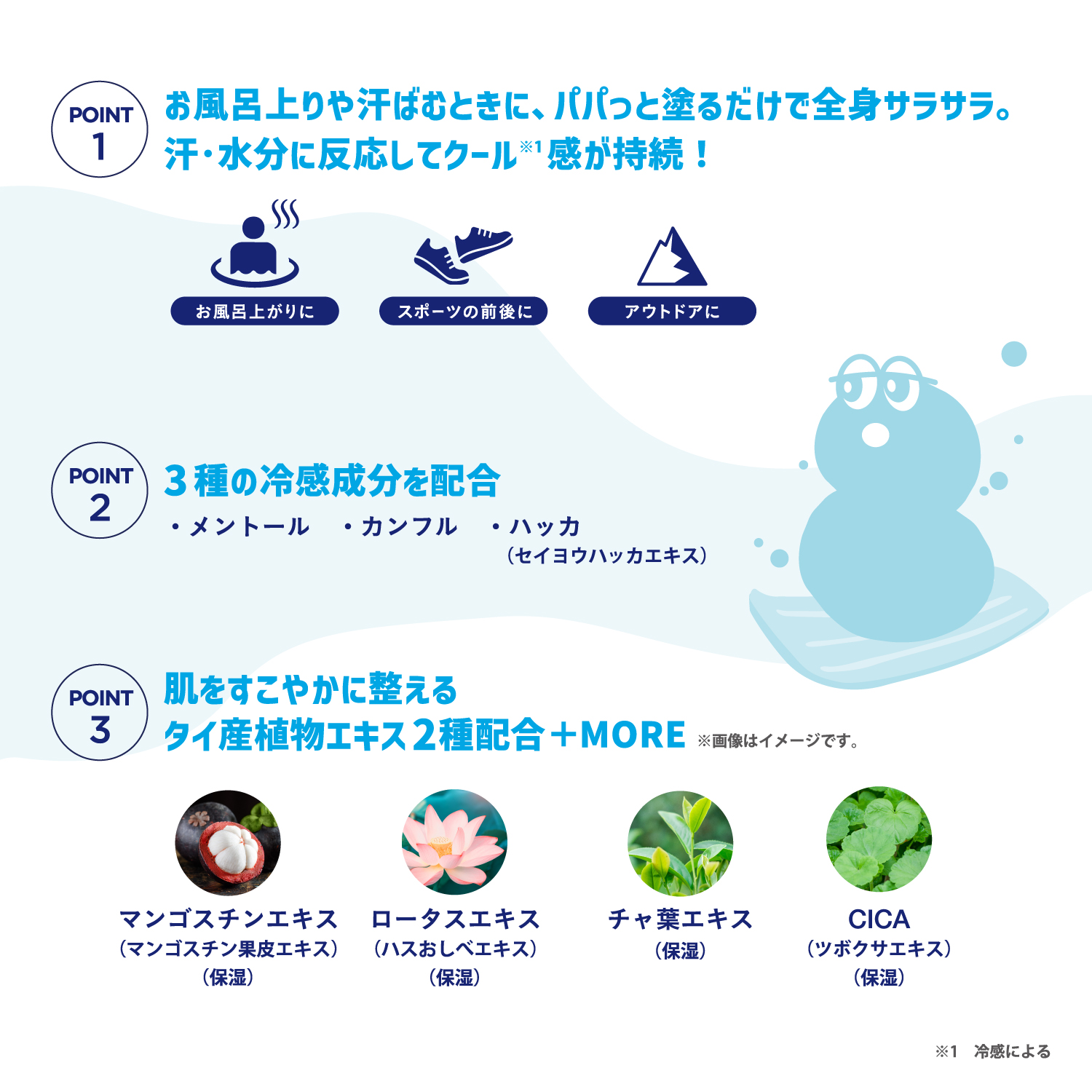 感成分を3種類配合することで、しっかりクール*感を持続します。
