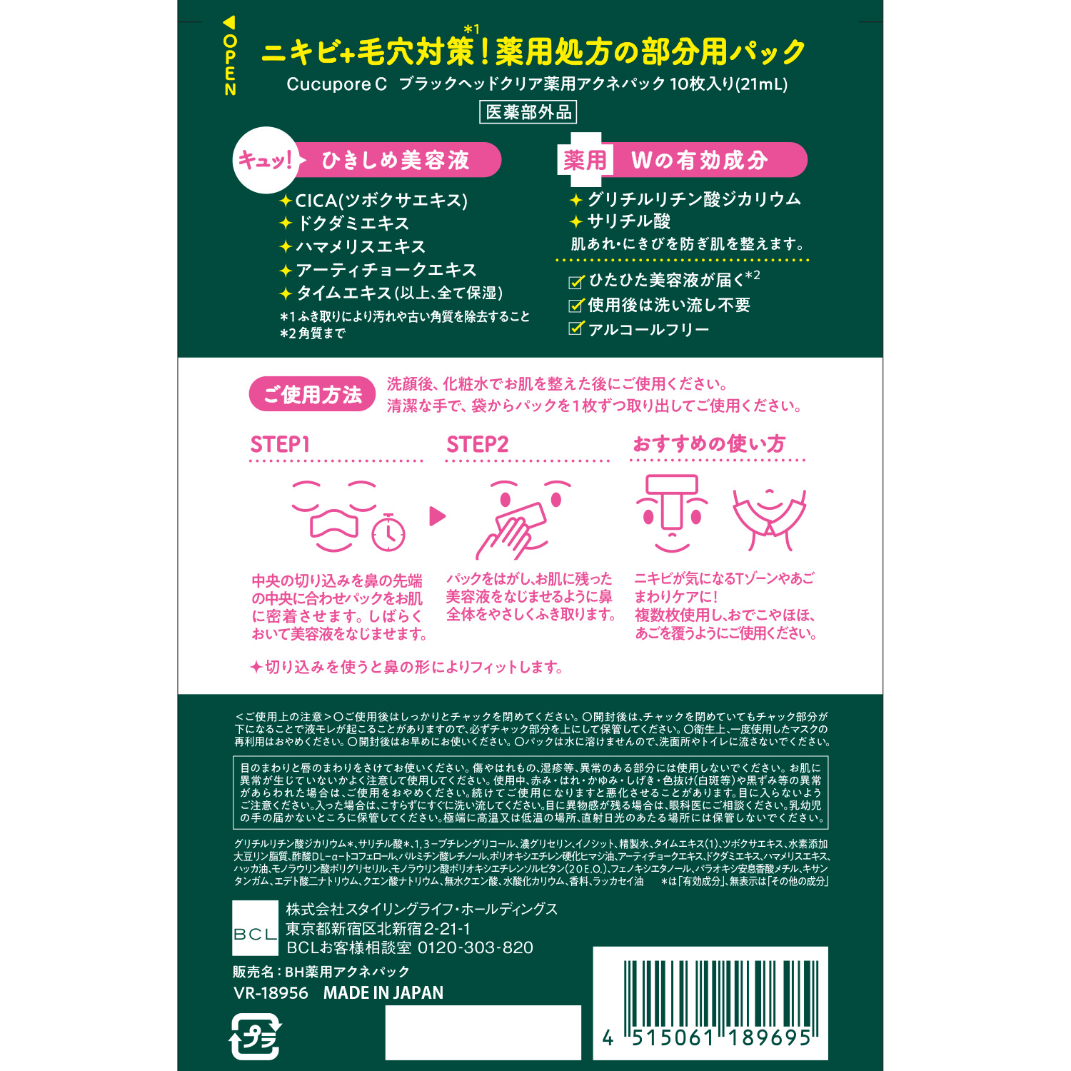 CICA配合薬用美容液パック