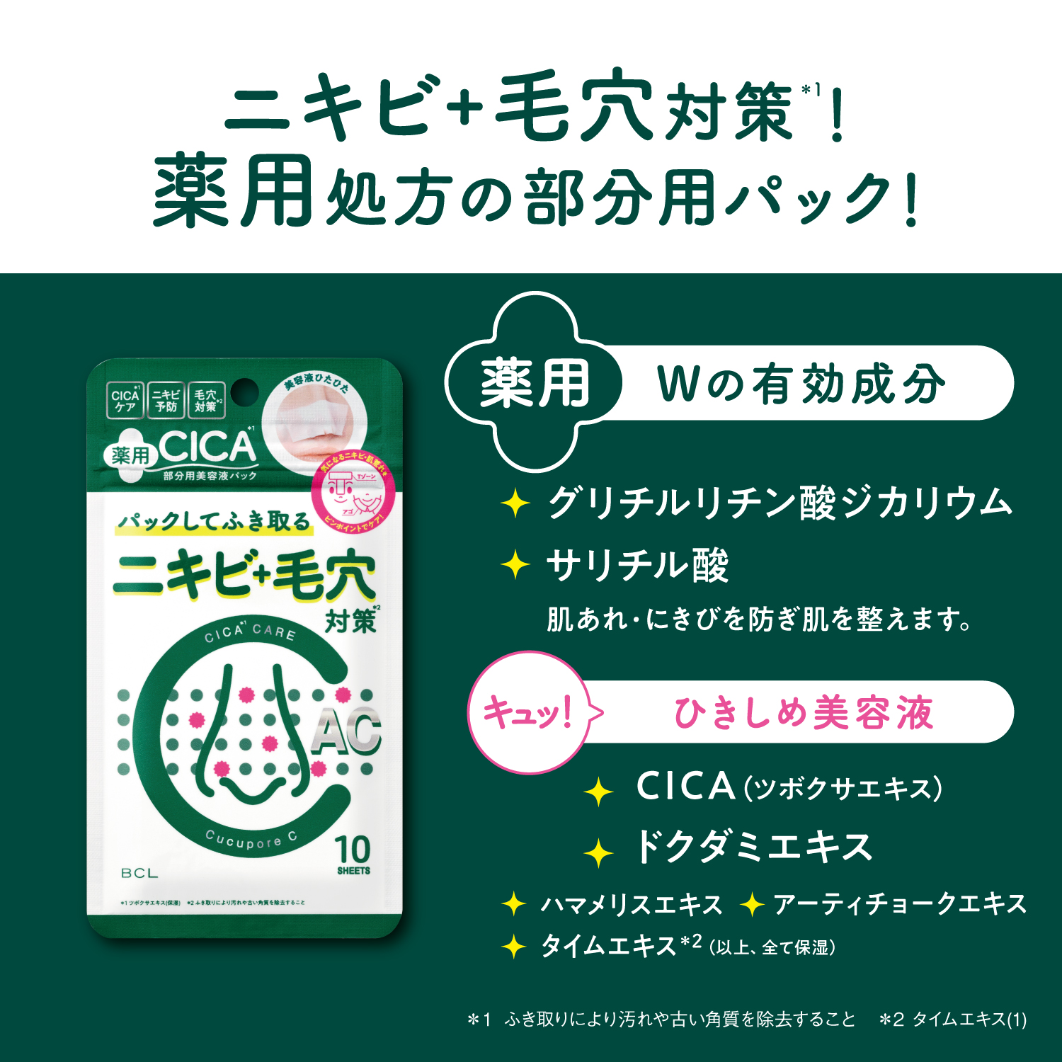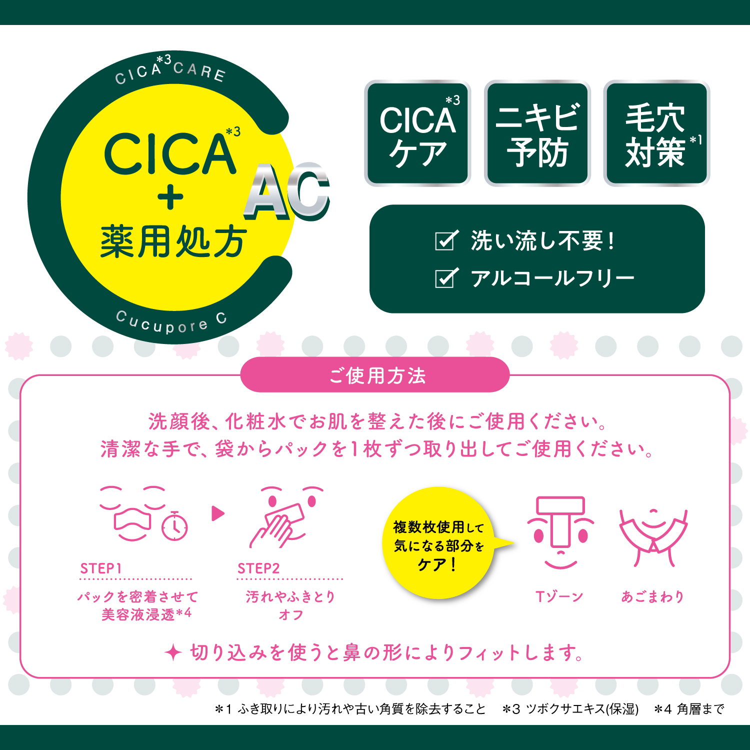 *1 ふき取りにより汚れや古い角質を除去すること *2 全て保湿 *3 タイムエキス(1)