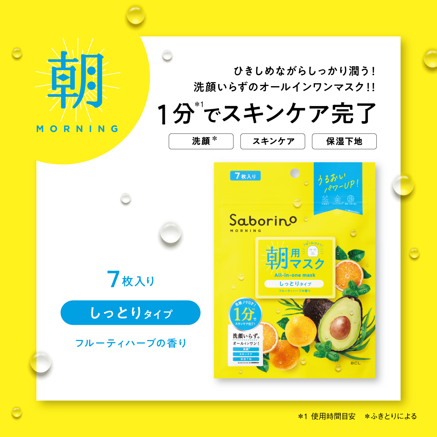 起きたての肌に寝起きの肌にそのまま貼るだけで、洗顔*2 、スキンケア、保湿下地までできる朝用のオールインワンマスクです。簡単なのにしっかりお手入れして1日中潤う肌に。ひきしめながらしっかり潤う!洗顔いらずのオールインワンマスク。