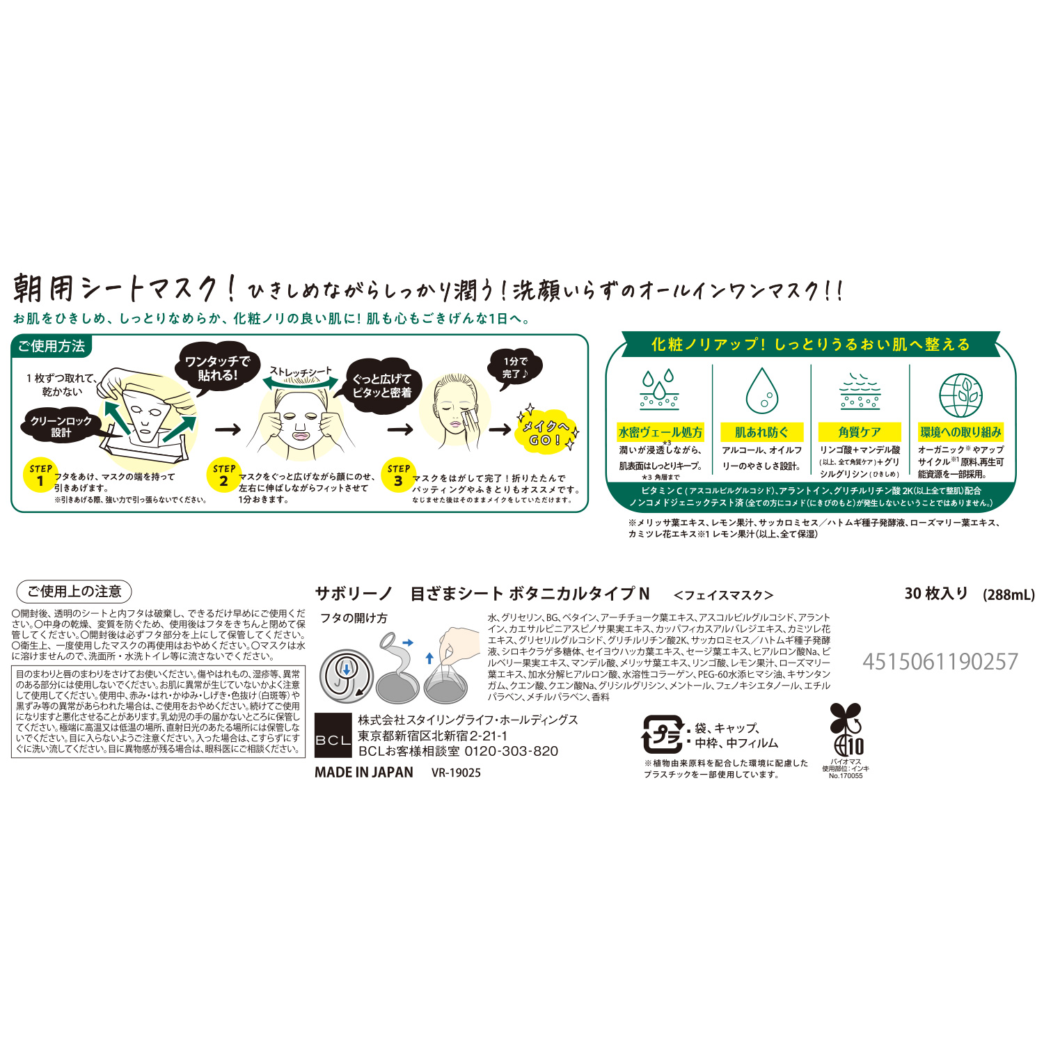 起きたての肌に寝起きの肌にそのまま貼るだけで、洗顔*2 、スキンケア、保湿下地までできる朝用のオールインワンマスクです。