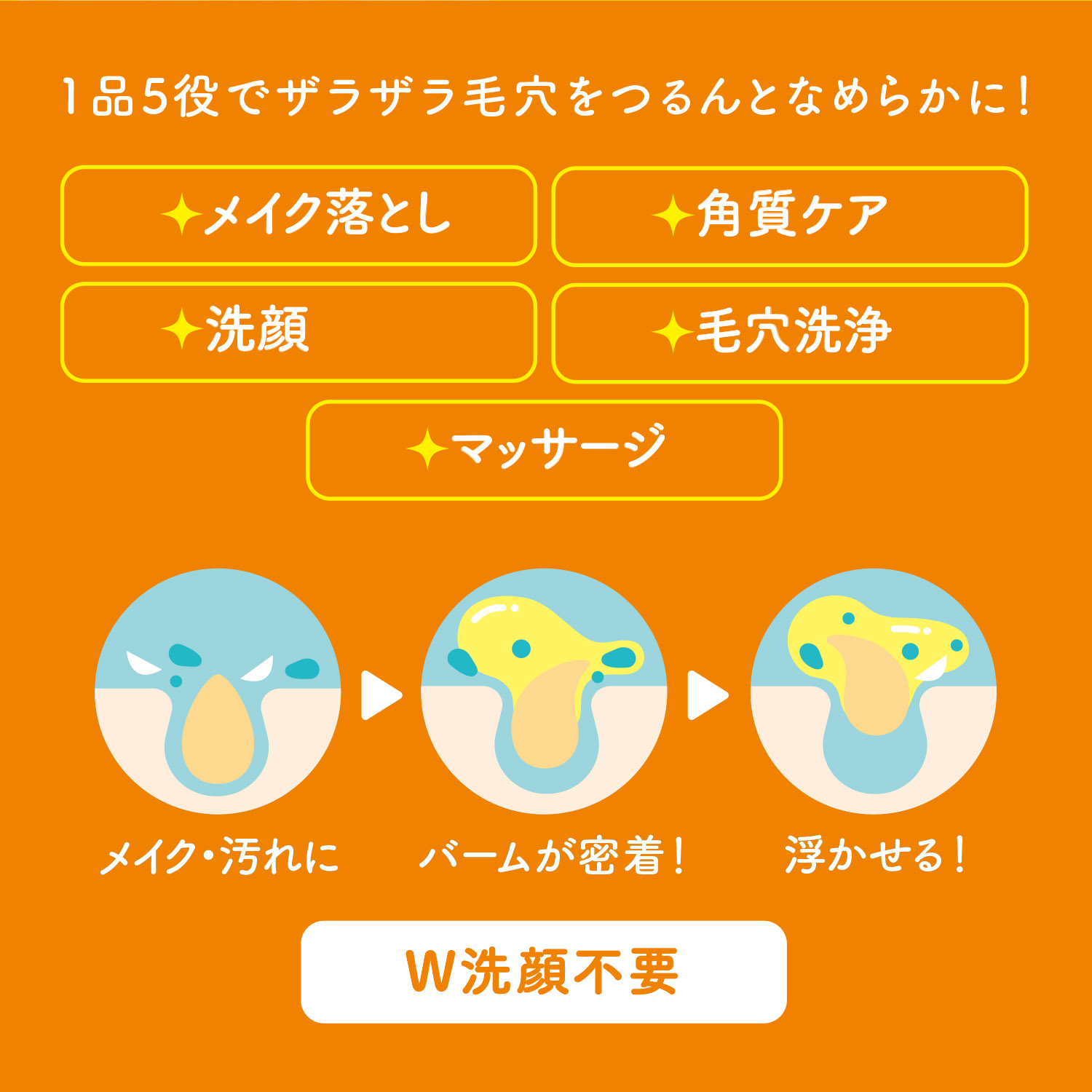 ◯メイク落とし、洗顔、角質ケア、毛穴洗浄、マッサージの5役を1つでかなえるクレンジングバーム。
