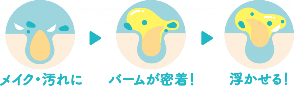 メイクや汚れにとろけるバームが密着し、浮かせてオフ。