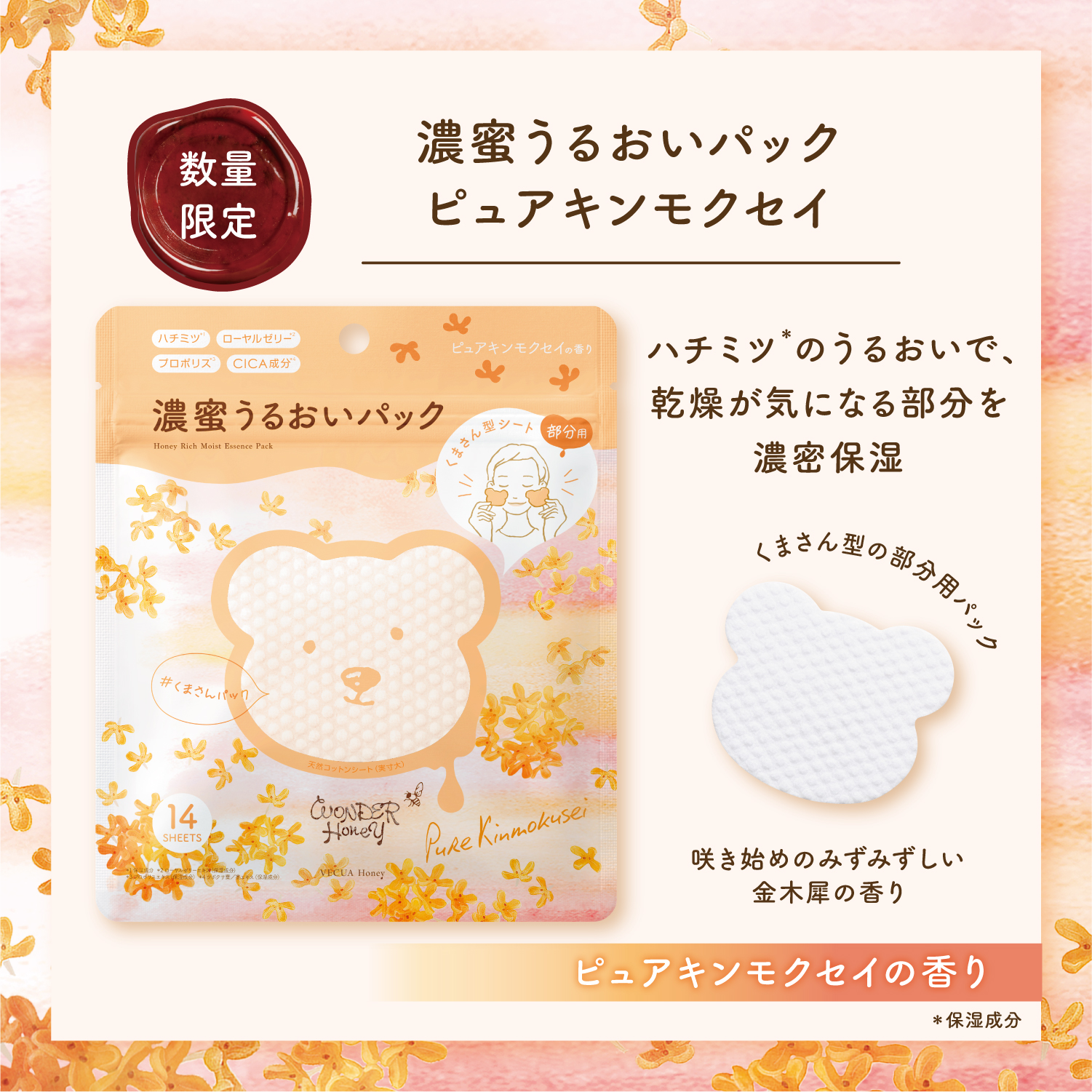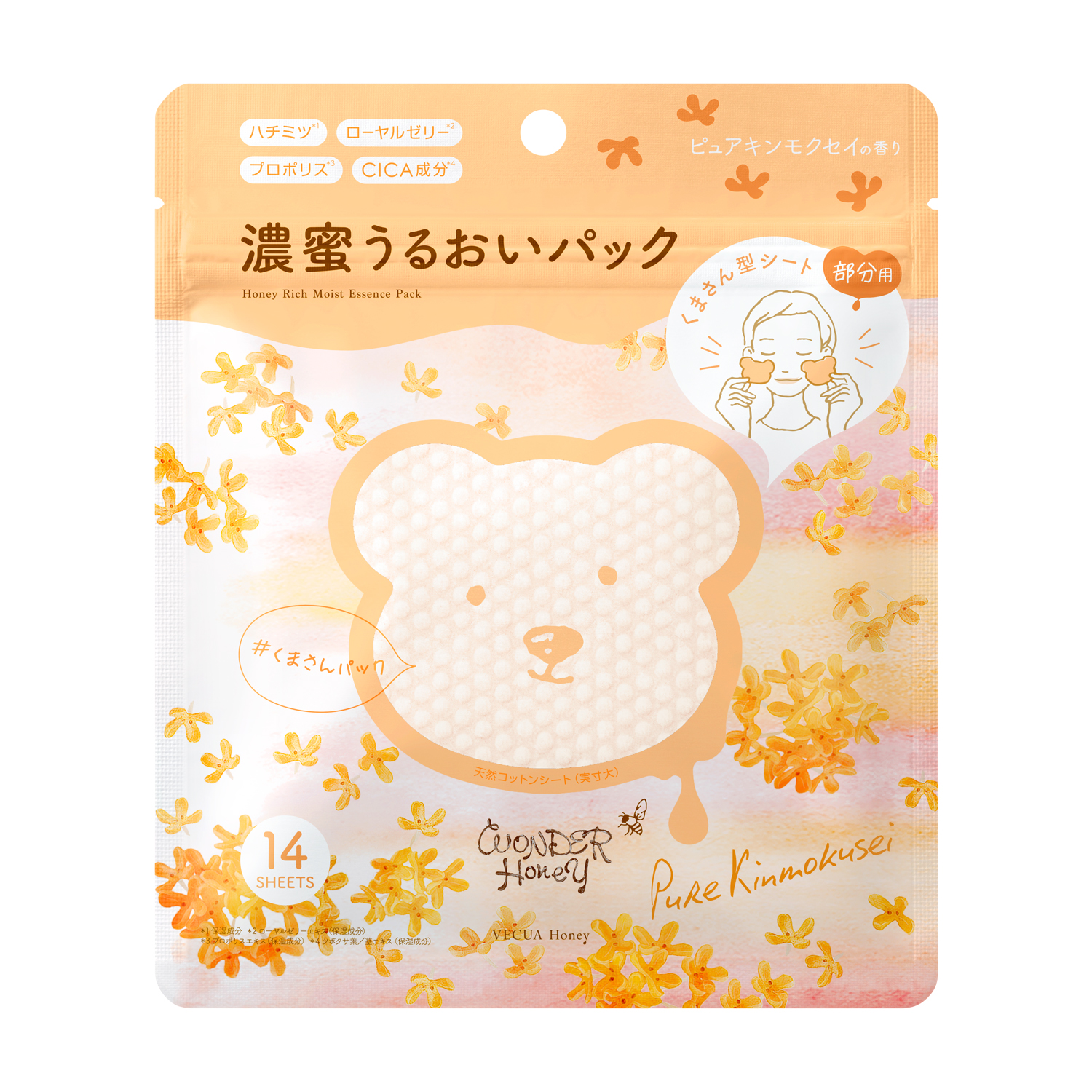 肌にやさしい天然コットンを使用したくまさん型シートに。