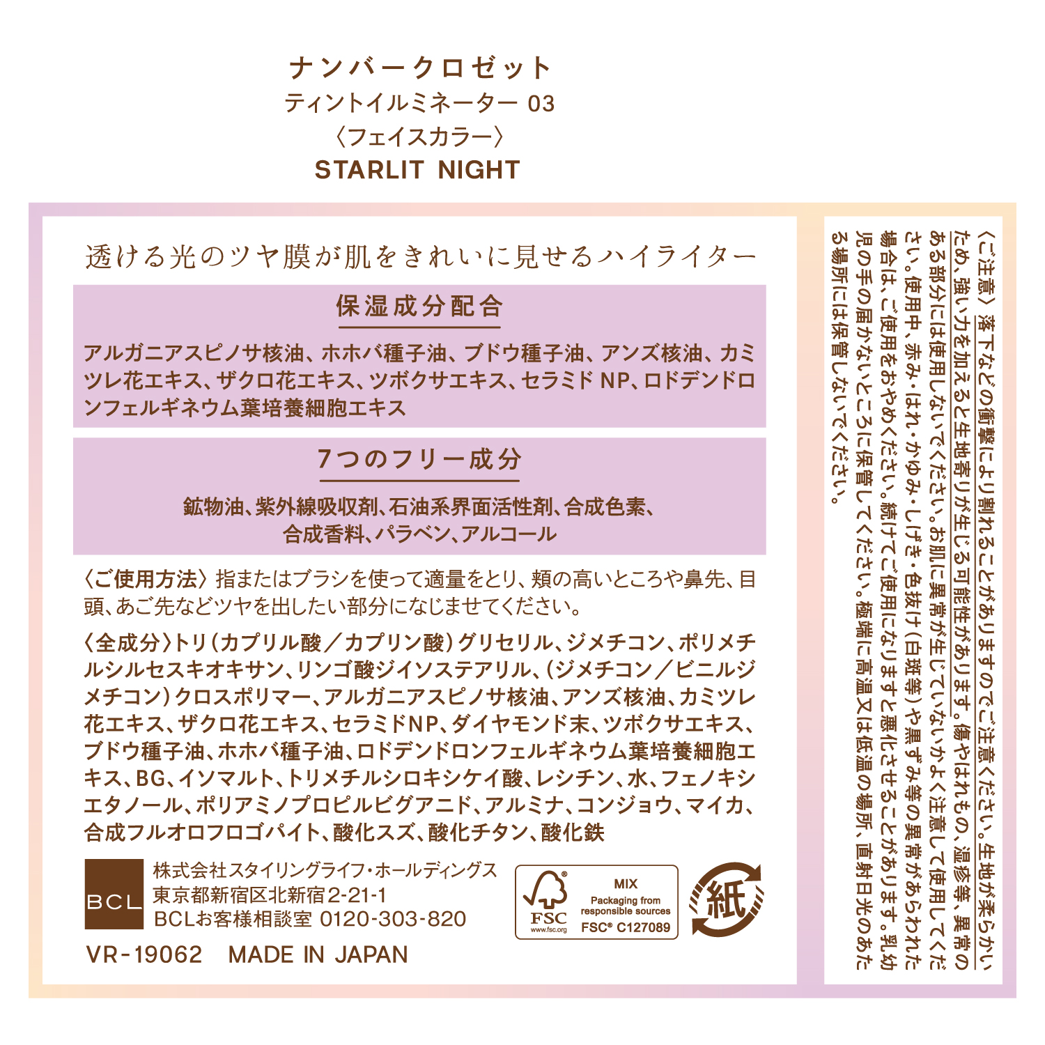 *1 ダイヤモンド末(着色剤) *2 トリメチルシロキシケイ酸(被膜形成剤)、ジメチコン(油剤)