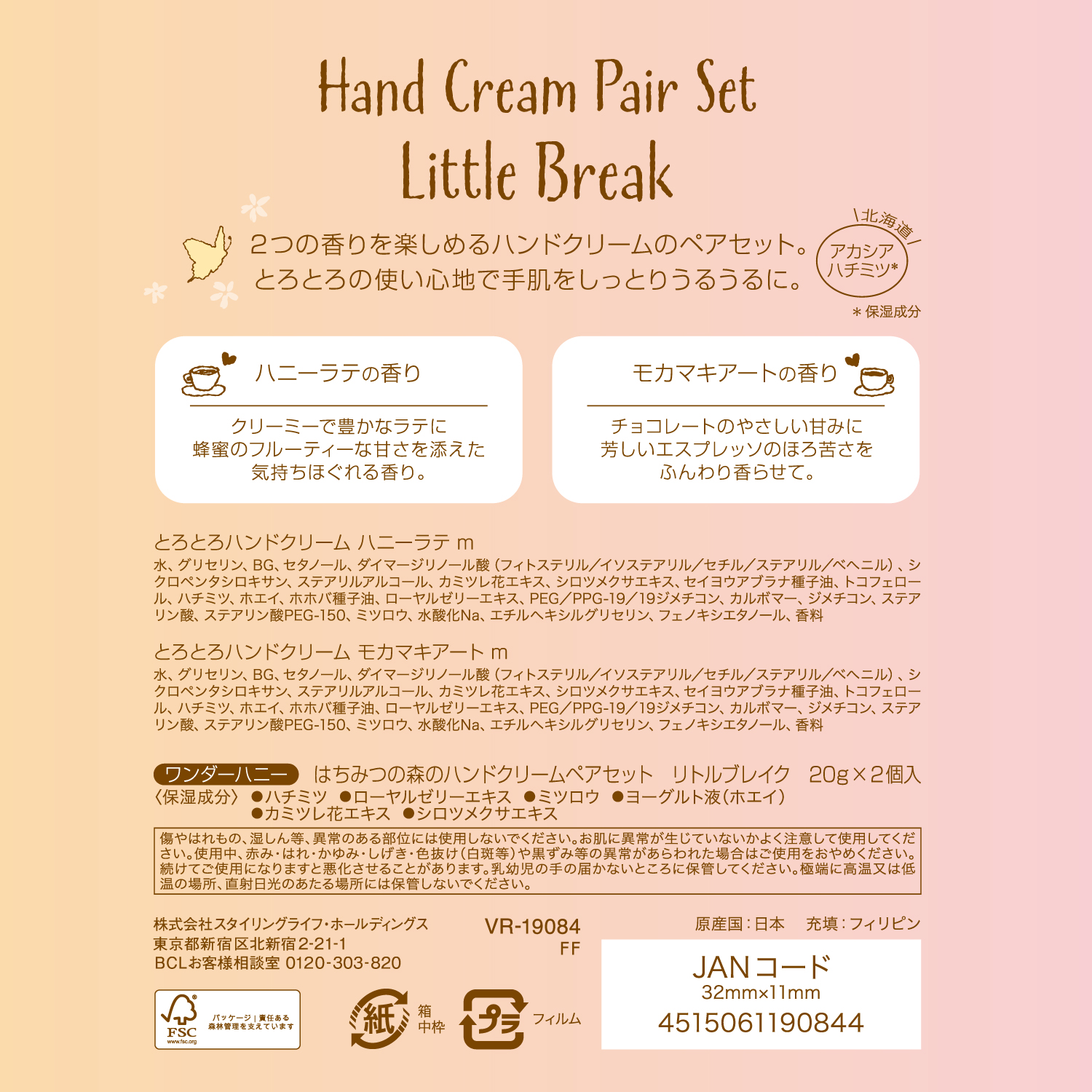 蜂蜜をはじめとしたうるおい成分を配合した、ハンドクリームのペアセットです。