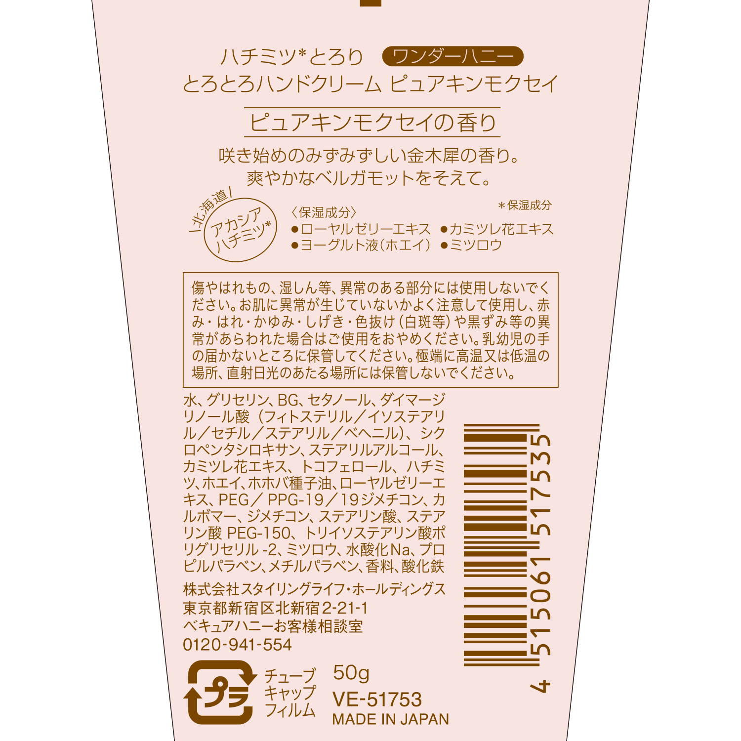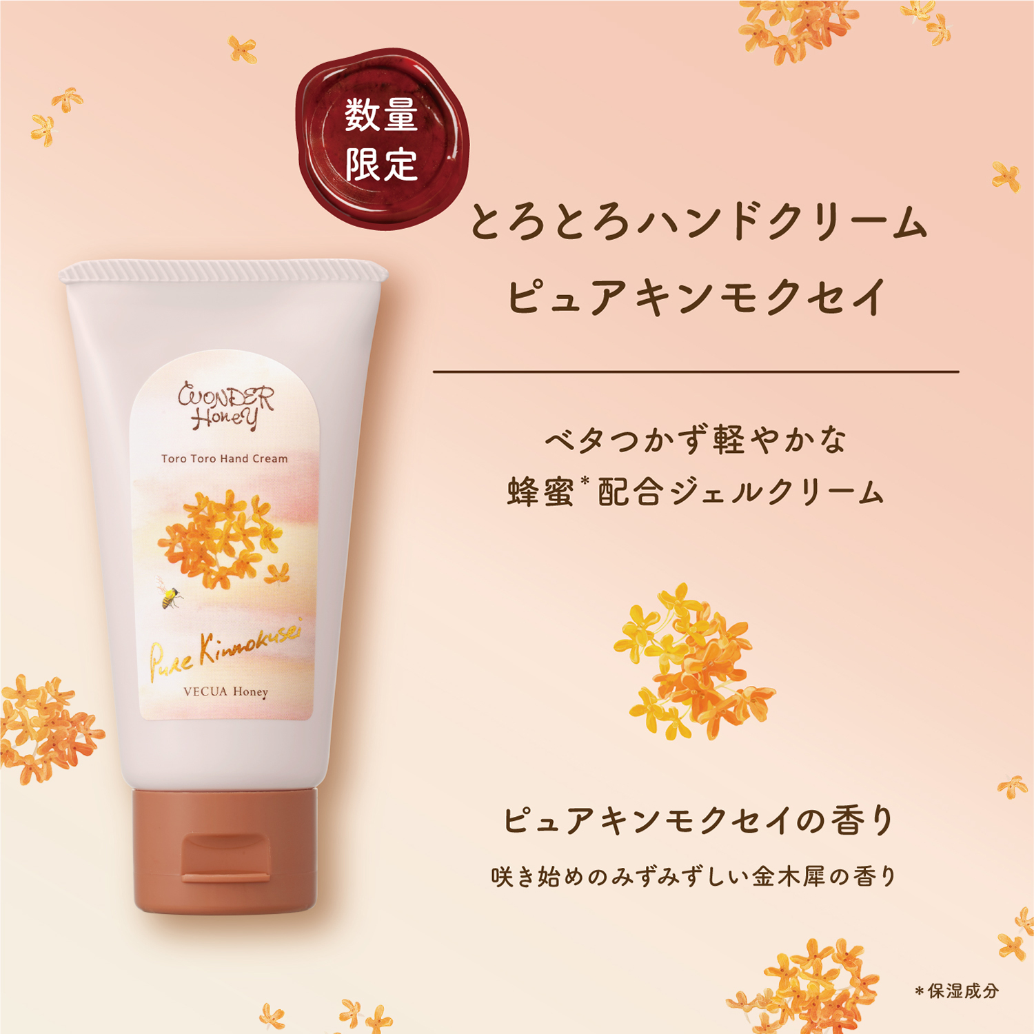 蜂蜜を配合したクリームが、やさしい潤いベールとなって乾燥から手肌を守ります。