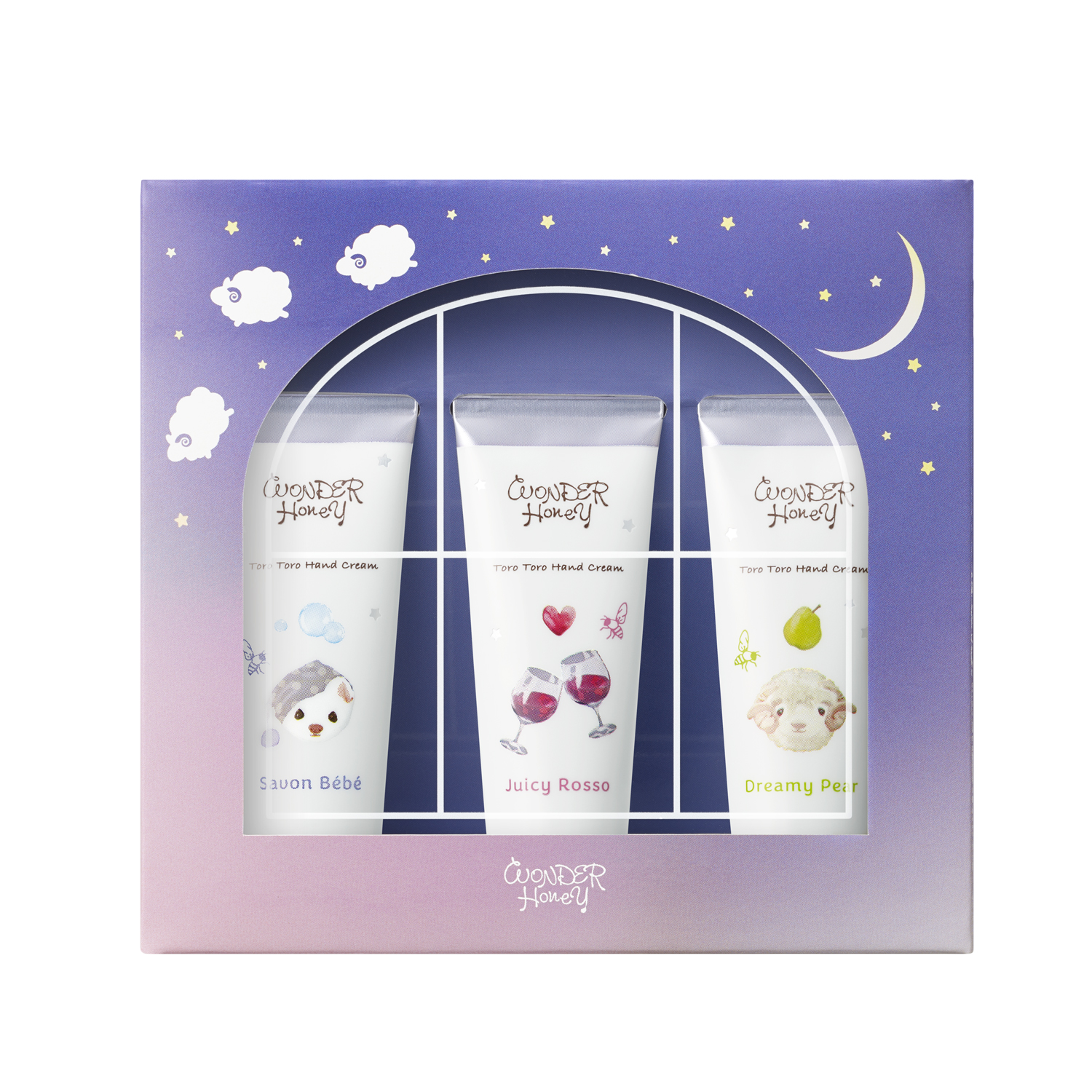 一日の終わりのリラックスタイムにぴったりなフルーティでみずみずしい香りと、爽やかなハーブの香りを星空色のボックスに詰め込んだハンドクリームセットです。