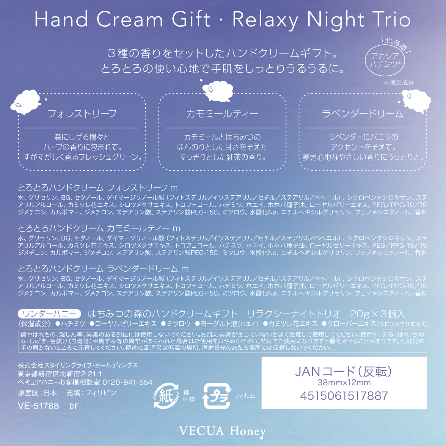 爽やかなハーブの香りを星空色のボックスに詰め込んだハンドクリームセットです。