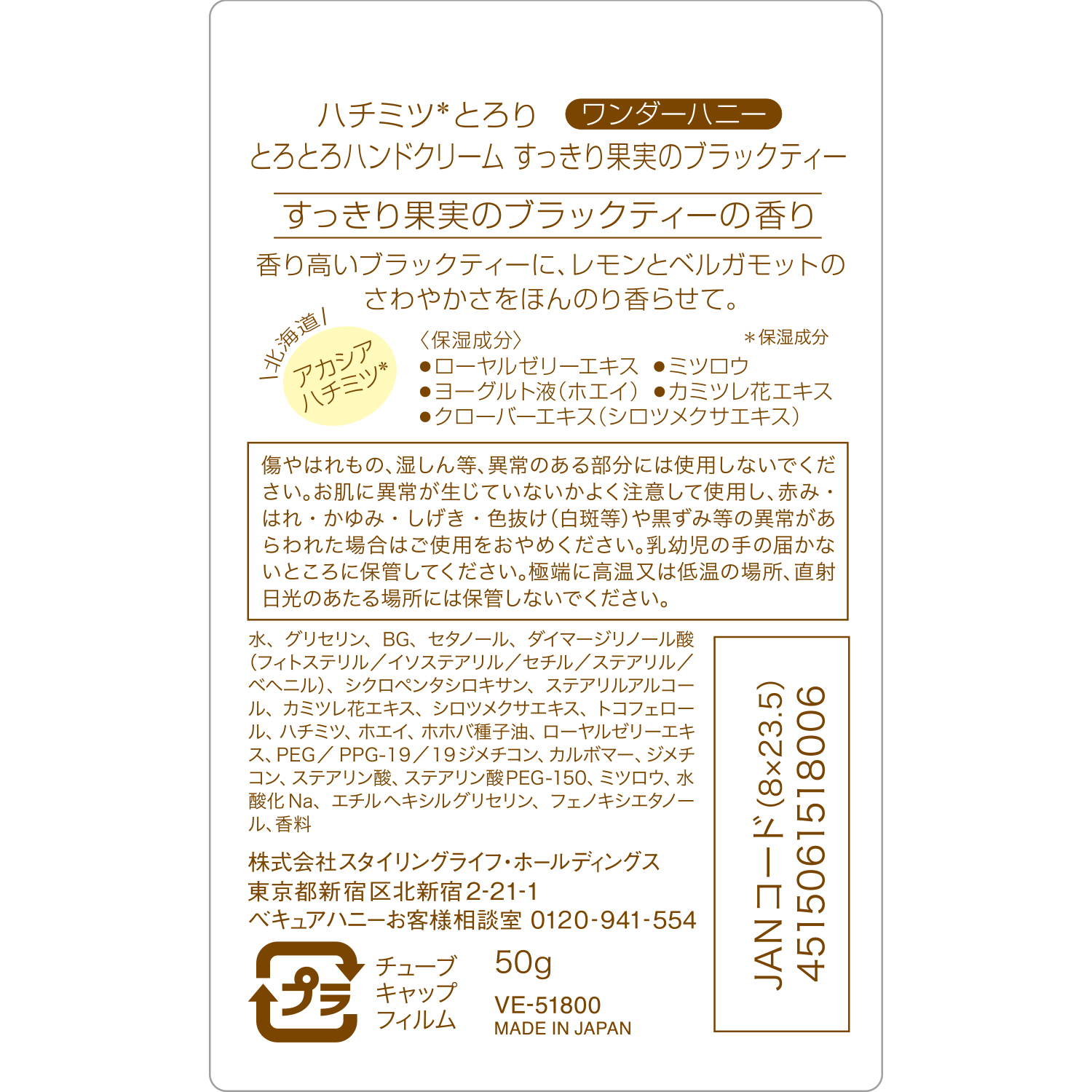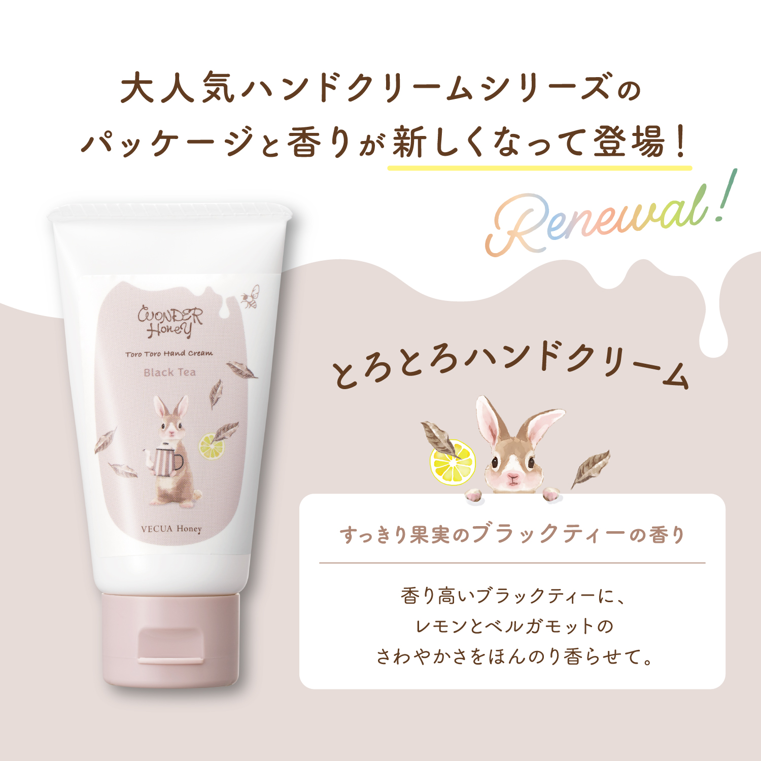 蜂蜜配合のクリームが潤いベールとなって、手肌を乾燥から守ります。