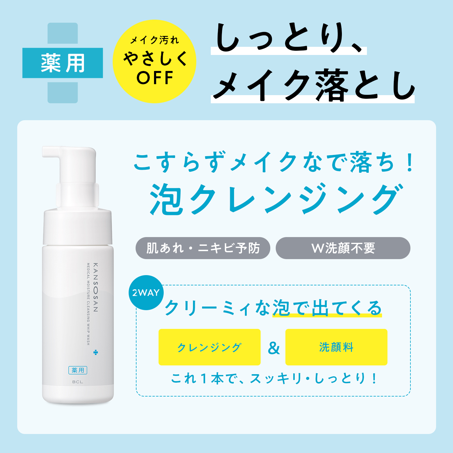 クリーミィな濃密泡で、摩擦を抑えてメイクを「なで落ち」オフ。W洗顔不要で乾燥の原因となる「洗いすぎ」を防ぎ、有効成分が肌あれ・にきびを予防しながら、しっとりとした素肌へ導きます。