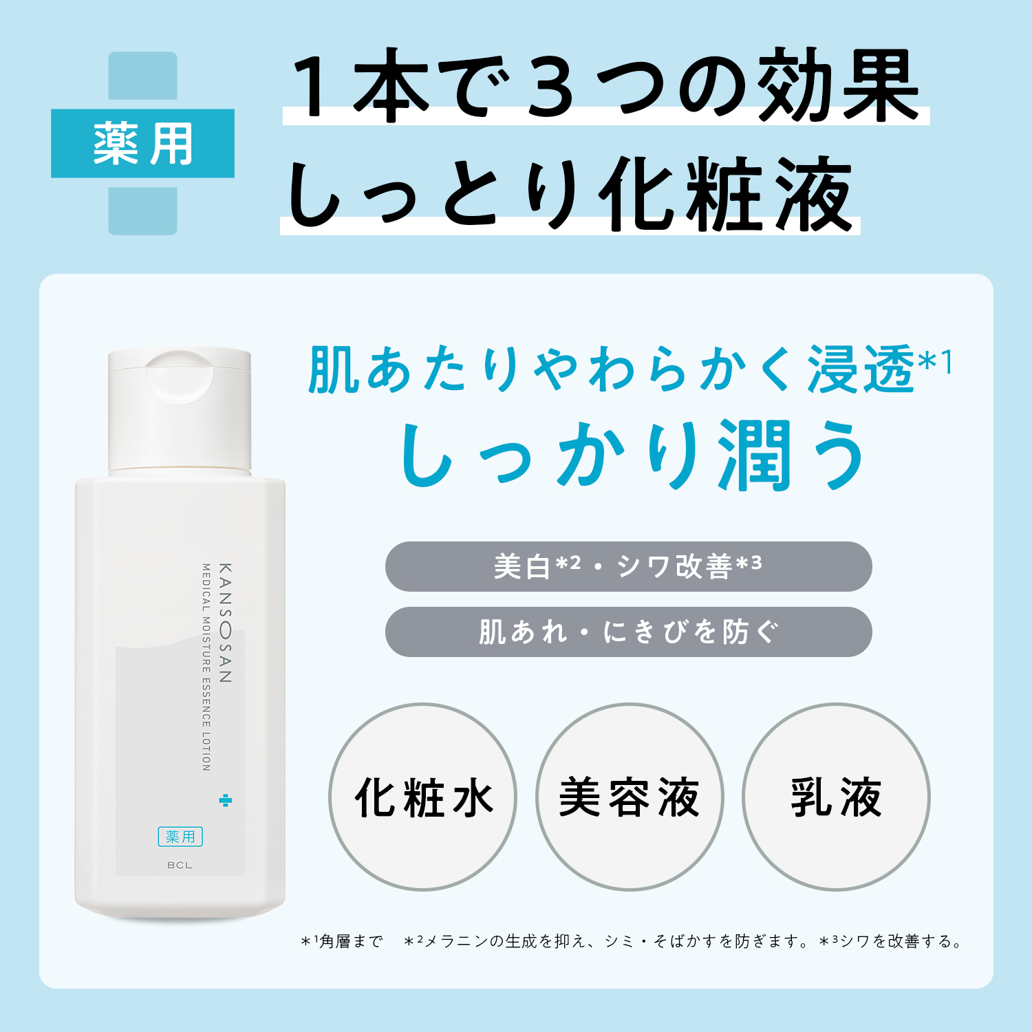 これ1本で「化粧水・美容液・乳液」が完了する3in1処方。とろんとやわらかな肌あたりで角層まで浸透し、シミ予防・シワ改善・肌あれ・にきびを防ぎながら、みずみずしい潤いを与えます。