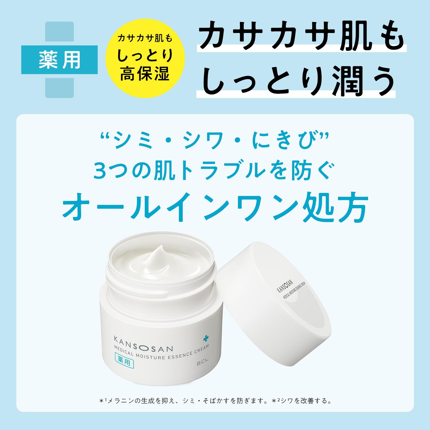 「美容液・乳液・クリーム」の役割を持つ高保湿な3in1クリーム。肌にとろんと伸びて、バームのようにピタッと潤いを密封。化粧液同様の薬用処方で肌トラブルを防ぎ、カサカサ肌をしっとり整えます。
