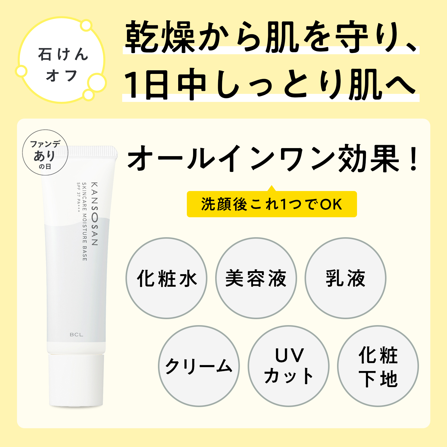 日中の土台作り保湿力スキンケア下地 洗顔後、これ1つですぐにメイクに進める「6in1」のオールインワン下地。1日中クリーム塗りたてのしっとり感をキープして乾燥崩れを防ぐ、肌にやさしい石けんオフ処方です。