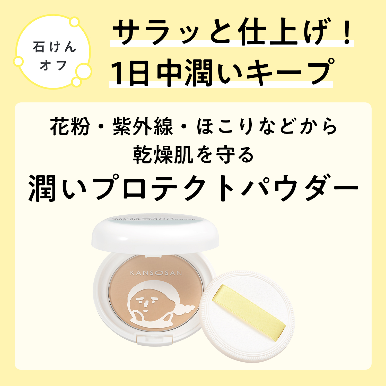 守る・仕上げる保湿力プロテクトパウダー 美容液成分をたっぷり配合。潤いをキープしながら、嫌なテカリやべたつきをサラッと抑えます。乾燥だけでなく、紫外線・花粉・ちり・ほこり・PM2.5からも肌をプロテクト。こちらも石けんで優しくオフできます。